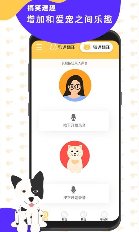 1. 录制翻译:录制宠物的叫声,软件将自动翻译并给出可能的情感解读。