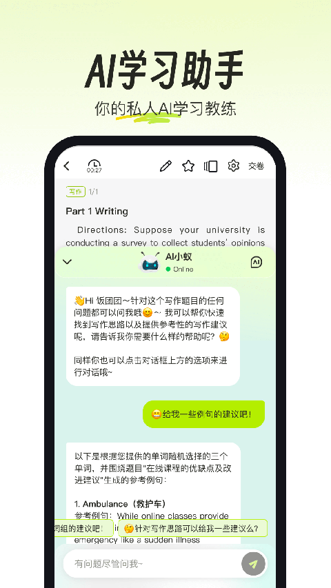 2. AI智能测评与押题:通过AI智能测评,精准评估用户基础能力,智能诊断薄弱环节。同时,AI押题功能能够智能筛选必考题型,生成AI押题卷,提高备考效率。