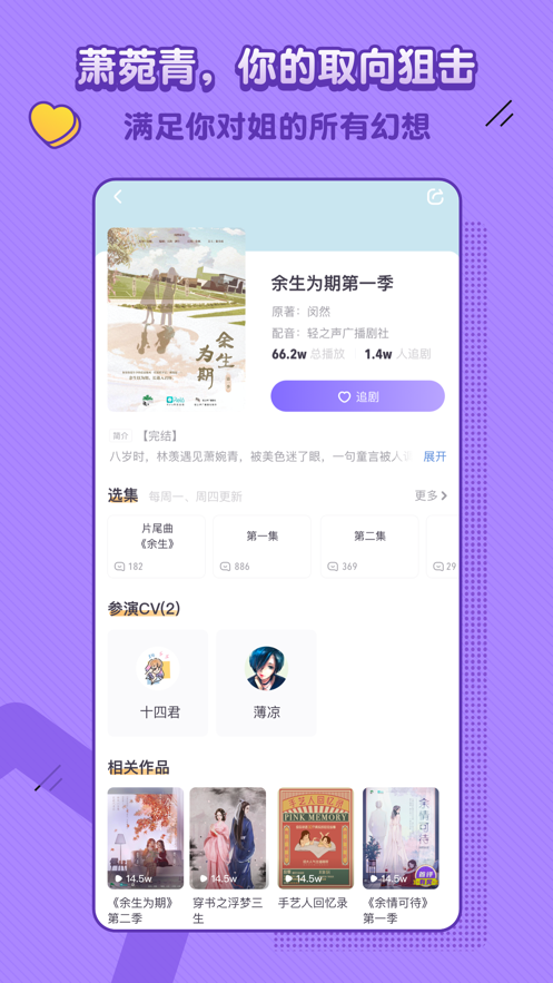 饭角汇聚了大量高质量的广播剧资源,覆盖热门IP改编、原创剧本等多种类型。用户可以在这里浏览最新的广播剧更新,收听自己喜欢的作品,并参与社区内的讨论,与其他听众交流心得。同时,饭角还提供了个性化推荐功能,根据用户的喜好为其推送合适的广播剧内容。