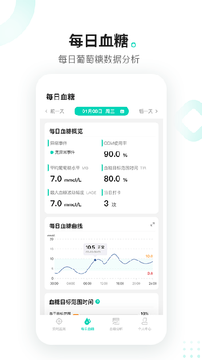 2. 全面数据分析:提供连续、全面、可靠的全天血糖信息,帮助用户了解血糖波动的趋势。