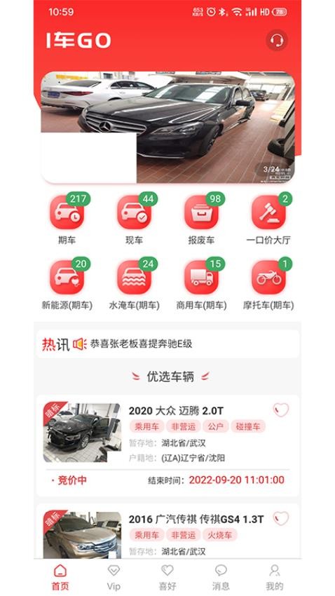 1车GO最新版app是一款专为车主和用户打造的二手车拍卖平台,提供丰富的汽车类型和在线估价拍卖服务,致力于保险损余物资、事故车、二手车、定制化拍卖以及拆车件资源服务的专业网络平台。