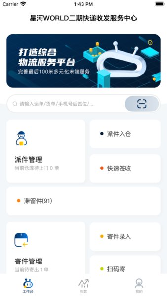 驿收发APP集合了快递扫描入库、出库通知、库存管理、用户信息管理、数据统计与分析等多项功能于一体,为快递驿站提供一站式服务解决方案。