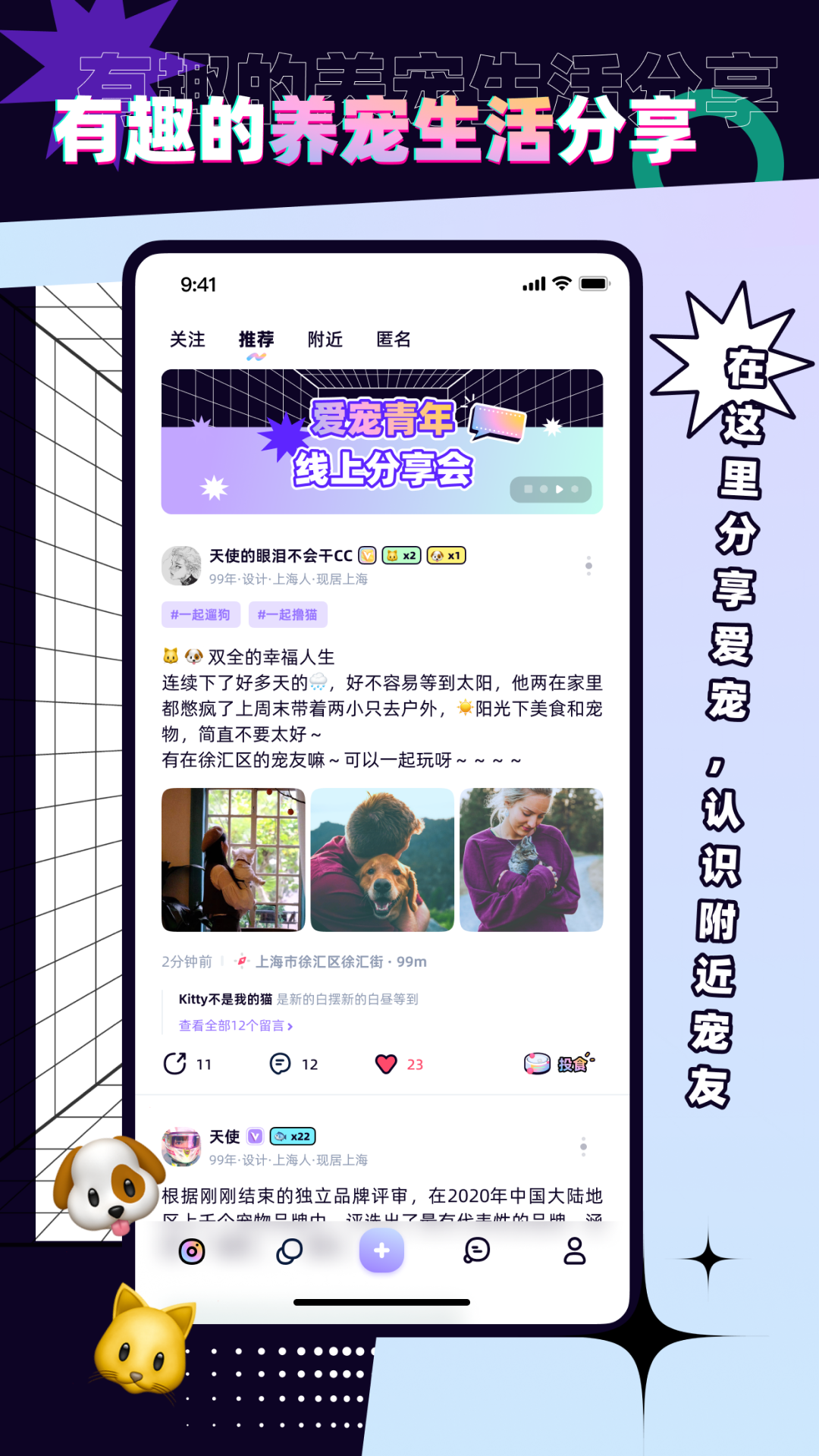 5. 社交分享:在社区模块分享宠物的照片、视频和趣事,与其他宠物爱好者互动交流。