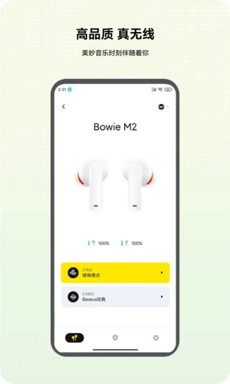 1. 设备管理:支持添加、删除和管理多个倍思蓝牙耳机设备,方便用户在不同设备间切换。
