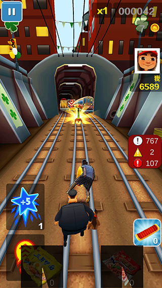 1. 跑酷闯关:玩家需要操控角色在地铁场景中奔跑,躲避各种障碍物,如火车、栏杆、树木等。同时,收集金币和道具,提高自己的分数和排名。