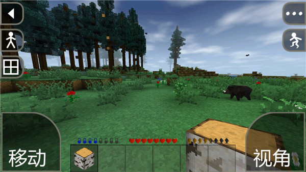 4. 游戏操作:玩家可以通过手指在左下MOVE区域滑动来控制人物行动,拖动画面中心来切换视角。制作栏内含小工作台和人物背包,可以用于制作物品和存储物品。