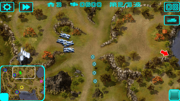 支持玩家自由切换阵营,通过兵营升级坦克(近程攻击、远程攻击、减速、加血四大类型),结合地形(如山地掩护、河流阻断)制定战术。联机模式中,玩家需利用“太阳能集热器”争夺资源点,激活工厂生产空投坦克,形成动态战场。