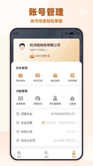 1. 下载并安装传化货运网app,注册并登录账号。