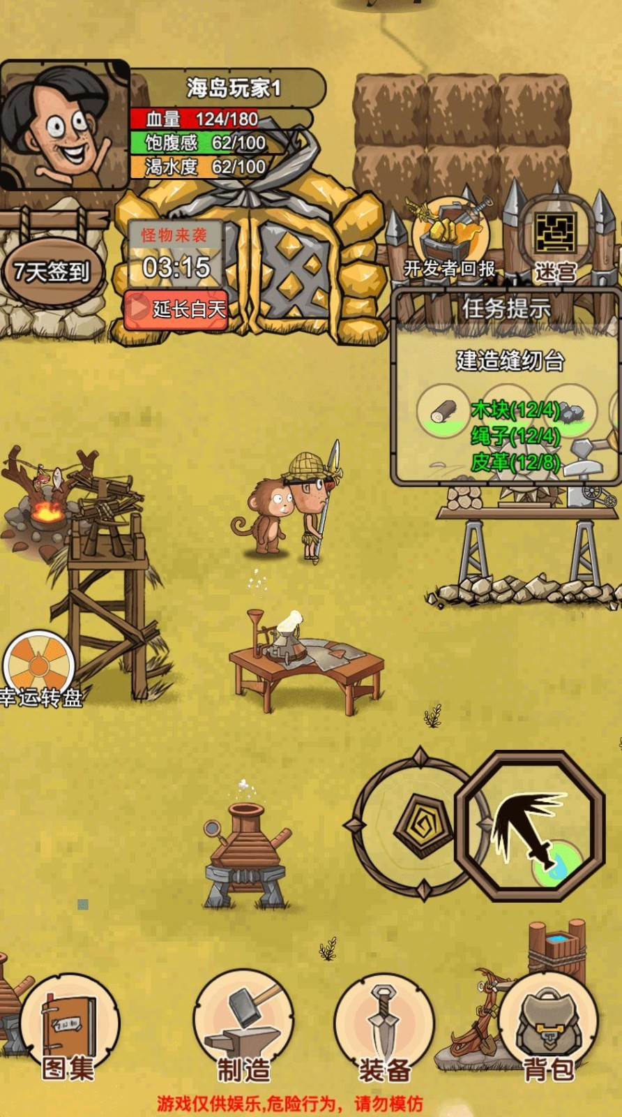 2. 建造避难所:利用收集到的资源建造安全舒适的避难所,以抵御野兽的袭击和恶劣的天气。