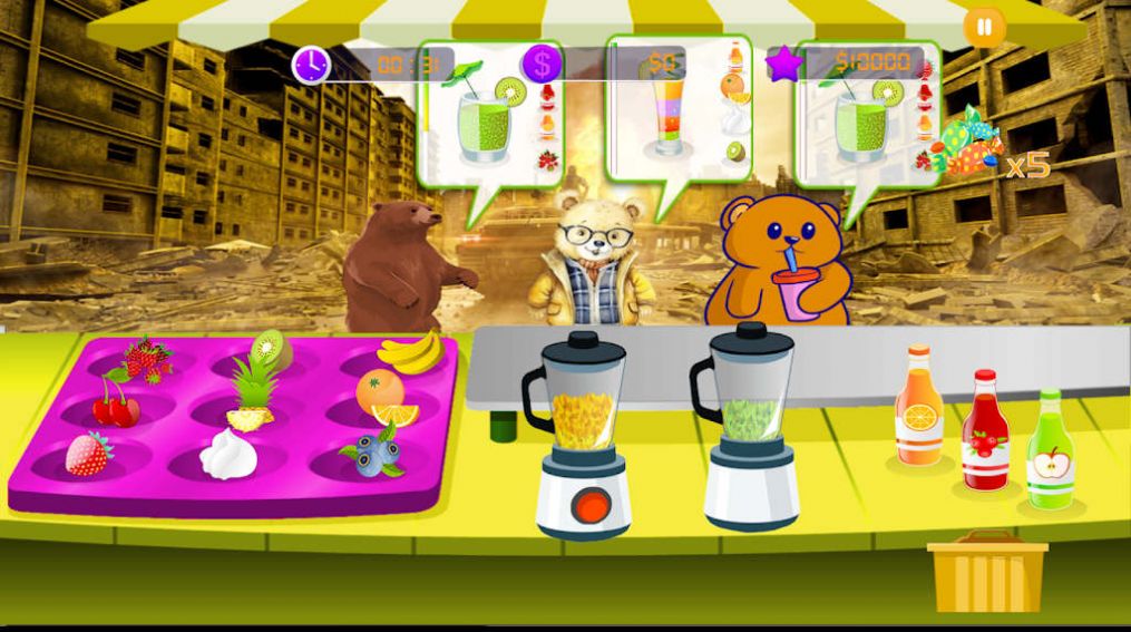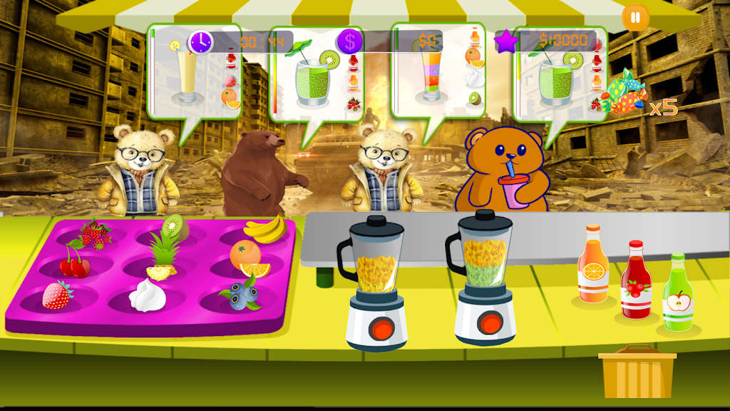 小熊果汁商店是一款轻松愉快的模拟经营游戏,玩家将扮演一位小店主,在充满活力的虚拟小镇上经营自己的果汁店。游戏以制作新鲜、美味的果汁、吸引顾客、扩展店铺规模和提升店铺声望为主要内容,让玩家在享受经营乐趣的同时,还能体验到制作果汁的乐趣和挑战。