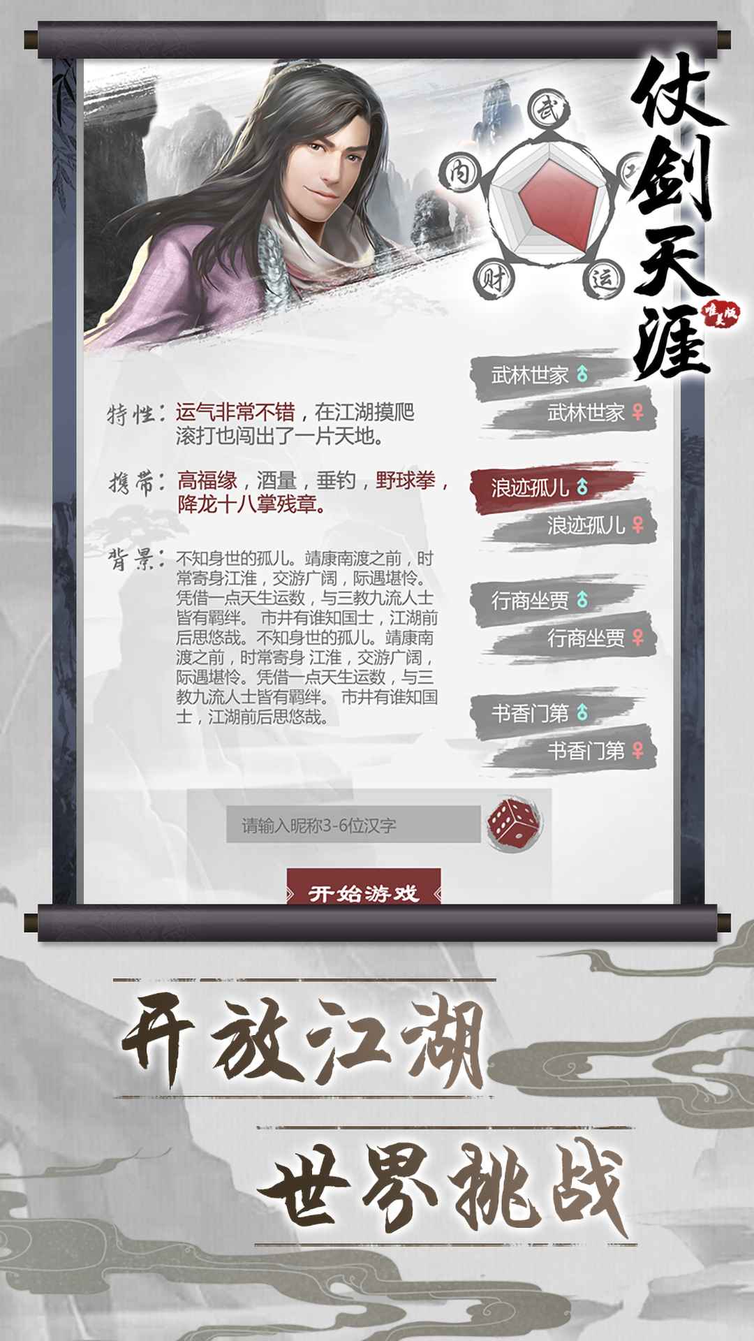 《仗剑天涯》是一款以古代武侠为背景的ARPG(动作角色扮演)手游,玩家将扮演一名初入江湖的侠客,在广阔的武侠世界中探索、战斗、成长,最终成为武林盟主。游戏以精美的画面、丰富的剧情、多样的玩法以及深度的角色养成系统为特色,为玩家带来沉浸式的武侠体验。