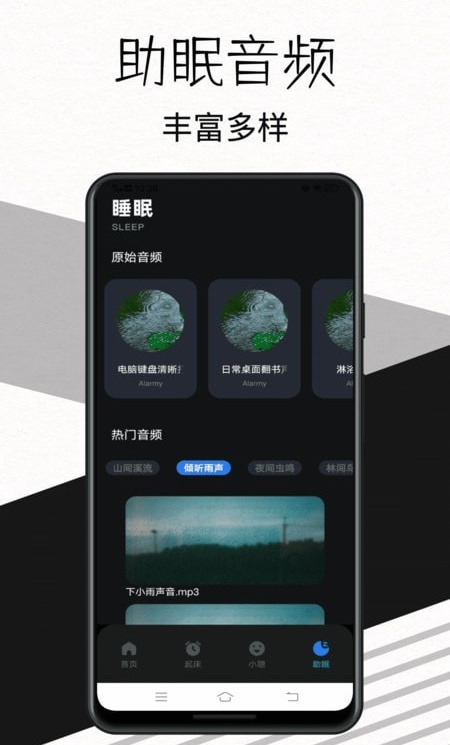 1. 多样闹铃模式:提供包括传统铃声、自然声音(如鸟鸣、海浪声)、渐进式音量等不同种类的闹铃,满足不同用户的喜好和需求。