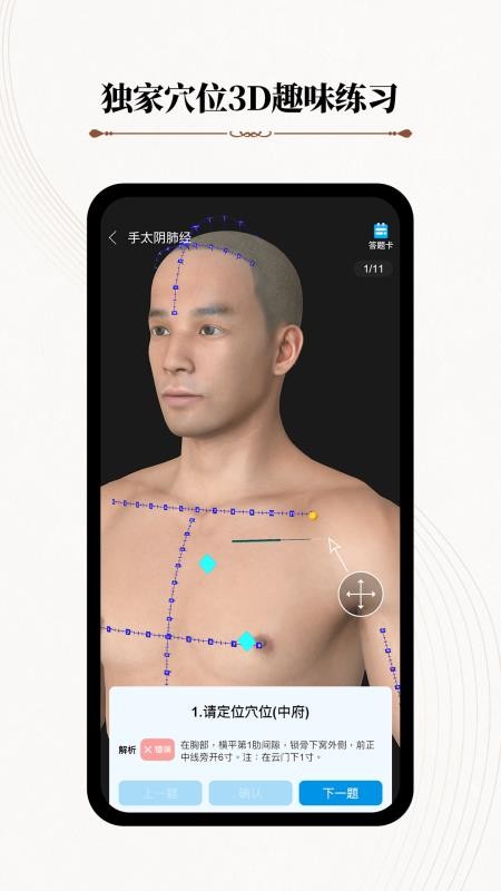 - 学习模式:提供经络走向动画、穴位定位练习等互动学习方式,增强记忆。