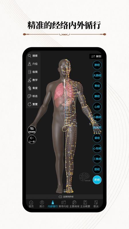 2. 3D经络演示:通过3D动画展示经络走向,帮助用户更好地理解经络系统。