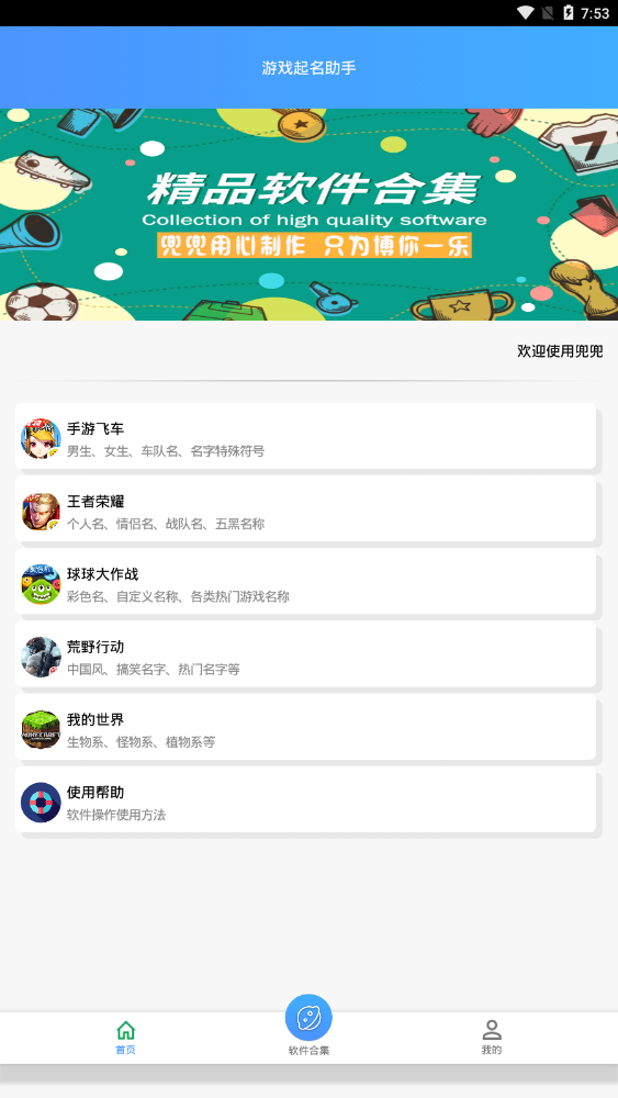 1. 打开游戏起名助手应用。