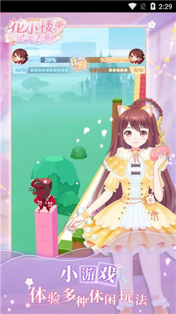 《花小楼的星光衣橱版》是一款集养成、换装、冒险于一体的休闲模拟游戏。玩家将扮演可爱的角色花小楼,在星光璀璨的时尚世界中,探索各种梦幻场景,收集独特服饰,打造个性装扮,并体验丰富的剧情故事和趣味挑战。