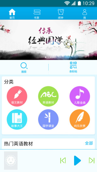 2. 选择所需学习的语言及教材,设置每日早晚播放时间。