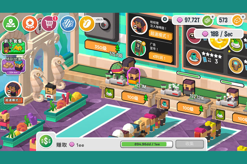 1. 放置玩法:即便不频繁操作,咖啡厅也会自动运营,产生收益,适合各种玩家。