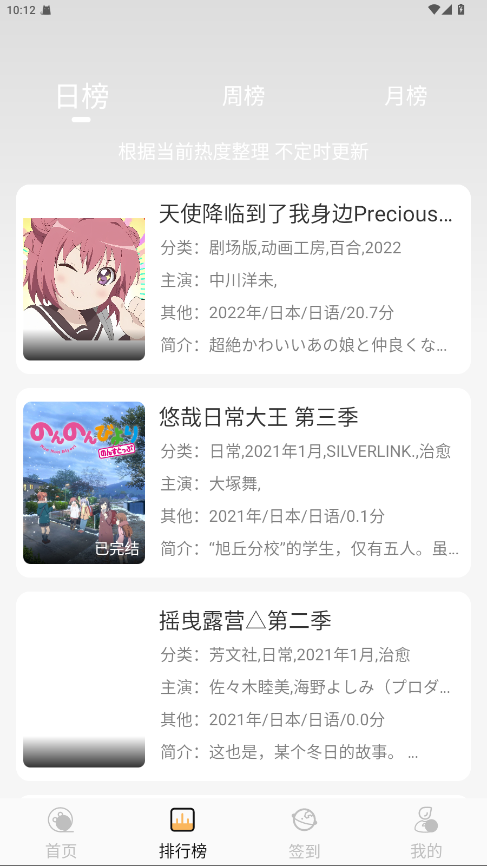 2. 分类浏览:按照类型、题材、评分等分类浏览动漫作品。