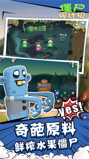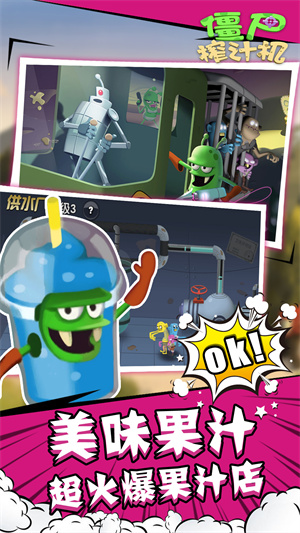 《僵尸榨汁机》是一款集策略、经营与休闲于一体的创意手机游戏,玩家将扮演一位“僵尸猎人”,在充满奇异植物与僵尸的世界中,通过捕捉、培养各种独特的僵尸,并利用它们为自己开设的特色饮品店“榨汁”,从而赚取金币,解锁更多道具和装饰,打造属于你的个性化店铺。