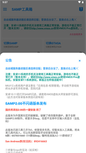 2. 服务器列表:展示当前可用的SAMP游戏服务器及其详细信息。