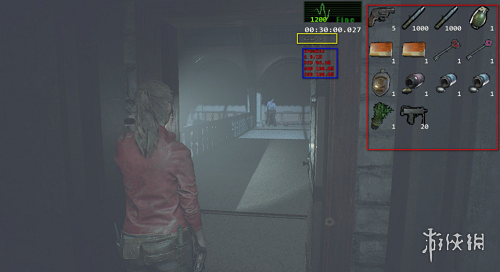 生化危机2:重制版 实用小工具,包内物品、自己血量、怪物血量、难度等级、游戏时间的实用型小工具。绿色框框是血量,血量下面的就是计时器,黄色框框是游戏难度 [游戏难度会随着你的成绩变动],蓝色框框内的红色文字是怪物的血量,出现几行数字,就代表附近有多少怪物。红色框框就是你包内的物品了,PS:此功能可已关闭。图二:左边是设定选项表,中间的是把道具栏位关闭后的效果,右边是我觉得刚好大小的设置。