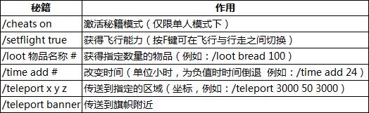 殖民地求生 游戏秘籍及物品列表代码;给出了殖民地求生的秘籍,例如获得飞行能力、指定数量的物品、改变时间、传送到指定的区域、传送到旗帜附近等功能。物品的代码列表包含在压缩包内的xls文件内。