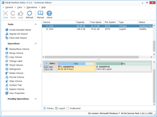 适用于WindowsPC的MagicPartition软件。系统C驱动器是否已满,没有可用空间来安装更新或应用程序?别担心,NIUBI分区编辑器专业版可以帮助您轻松解决这个问题。这个神奇的分区管理器软件比其他实用程序更好,集成了独特的回滚数据保护技术,如果发生任何软件错误或硬件问题,它可以在一秒钟内自动将计算机回滚到恢复状态,这样你就不会需要担心数据安全。优化的文件移动算法有助于调整分区大小比其他任何工具快至少30%。工作方式与PartitionMagic相似但功能强大。此分区管理器软件支持Windows10,8,7,Vista,XP(32位和64位)。NIUBI分区编辑器专业版不仅是一个分区调整器,而且是一个多功能一体的工具包。它有助于复制分区以迁移数据,创建,删除,格式化,隐藏,激活,碎片整理,转换分区等等,以更好地管理磁盘分区并提高系统性能。