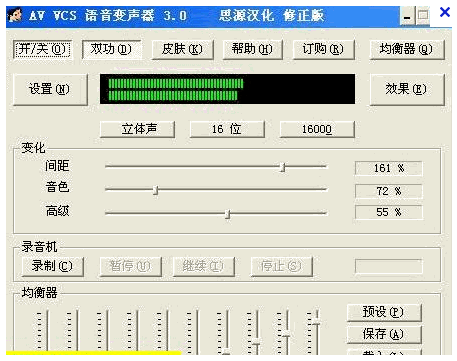 这个男声变女声软件|AVVCS是一个很有意思的变声工具,可实时对声音进行处理,自带100多种多种高品质的男声和女声发音和丰富的声音特效,完全兼容与一般的聊天室,网络电话,聊天程序和视频会议软件!想象一下你用外星人的声音讲话吧^_^AVVCS可以改变你在通讯软件中的声音,甚至将你的声音变为异性的声音!