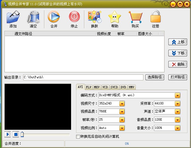 5.支持大的视频文件转换合并连接(如超过10G),提供转换合并后自动关机功能。