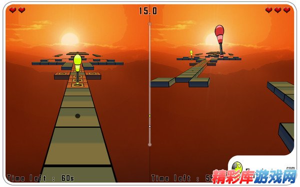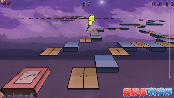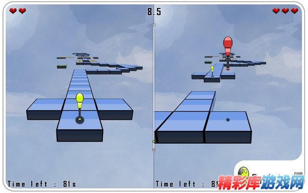 在重重机关与陷阱的云中平台上,玩家要灵巧的跳跃,达到目的地就完成了一关。不同难度的时间限制不同,考验你的技巧。支持双人在一台电脑上以分屏模式进行比赛。如果你玩腻了官方地图,也可以自己设计地图。