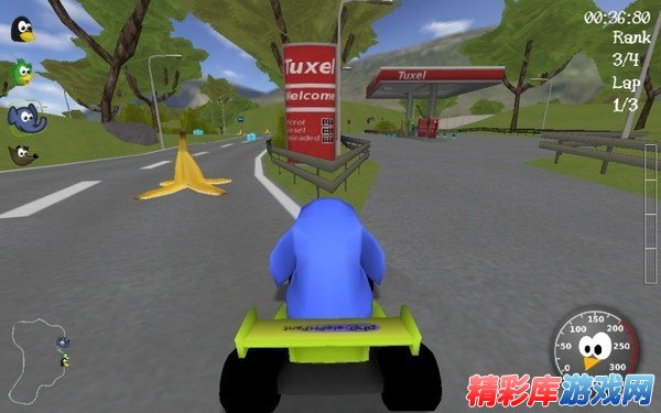 其实,不应该说类似马里奥赛车,简直就是马里奥赛车山寨版。在 SuperTuxKart 里可以漂移,喷气(需要获得长得像胶囊的 nitro 道具来集气),扔道具(蛋糕,保龄球,锚,口香糖,降落伞,马桶搋子,具体用法请 YY)。特别说明一下,它没有马里奥赛车那么多漂移技巧,漂移是不能喷气集气的。纯粹是一个老少皆宜的赛车游戏。来看看截图: