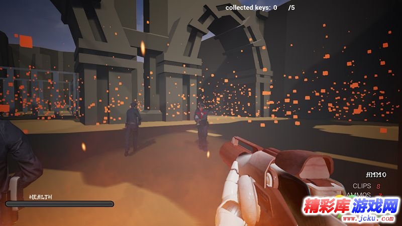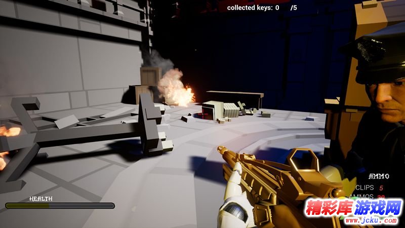 玩家需要避免不同类型的陷阱和虚拟巡逻警察部队。游戏开始时玩家没有任何武器。你需要找到武器。游戏包含4种武器:步枪,手榴弹,发射器,猎枪。还有健康纠察和弹药采集。所以杀死敌人,找到丢失的钥匙。这个游戏是低聚FPS模因射击游戏。