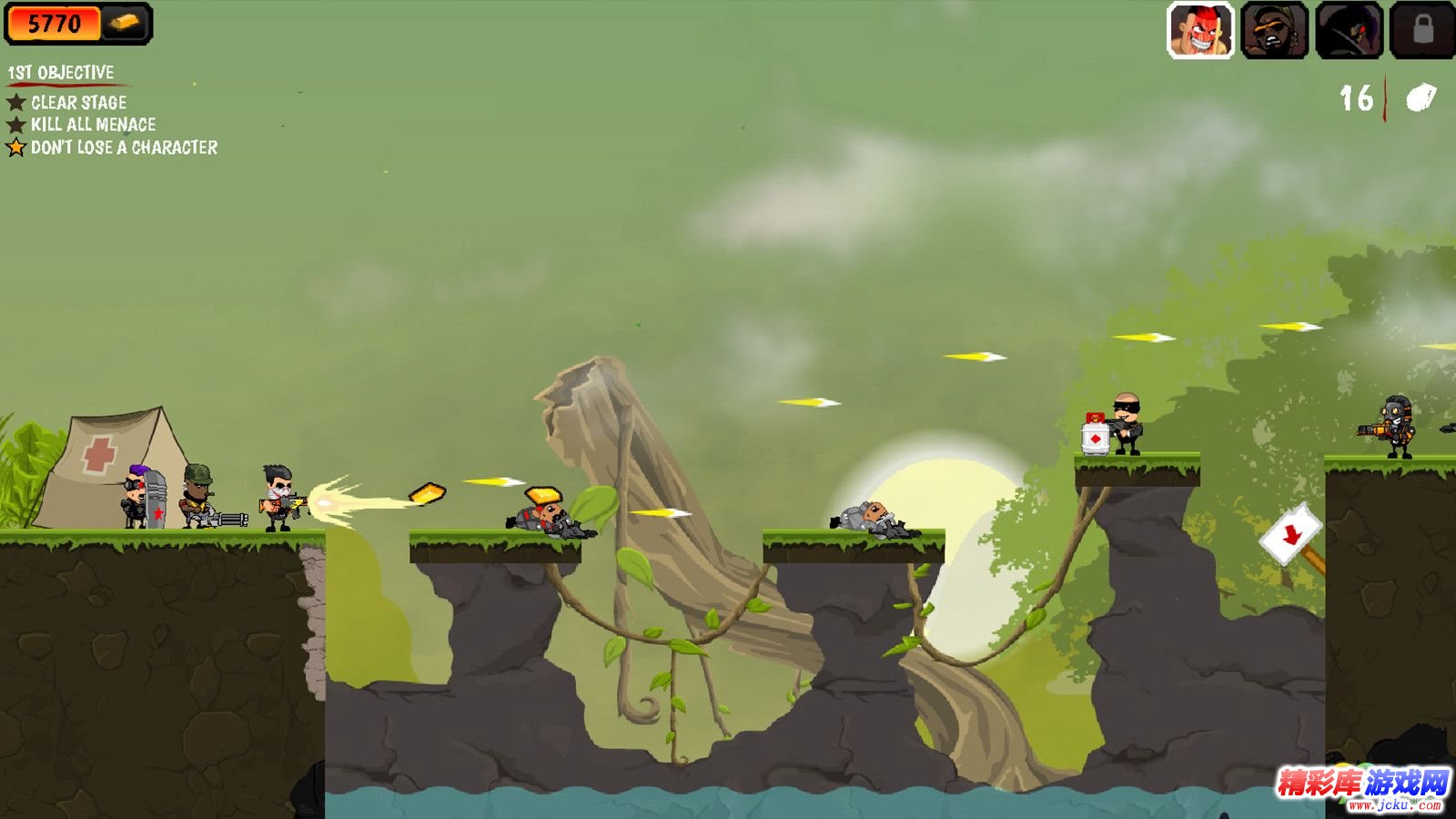 流氓伙伴的特征是我们的4个雇佣兵(攻击和手榴弹专家),烟雾(重型炮手和火箭发射器),(盾牌和无人机)和(跳忍者和在他们寻找黄金和复仇的邪恶公司。这款游戏是一个2D动作平台的射击游戏,让人联想起经典的平台游戏,游戏中有很多关卡,充满了谜题和敌人。